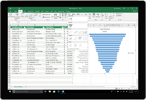 Perform better data analyses with funnel charts, 2D maps, and enhancements to PowerQuery and PowerPivot.- Funnel charts, 2D maps, and timelines