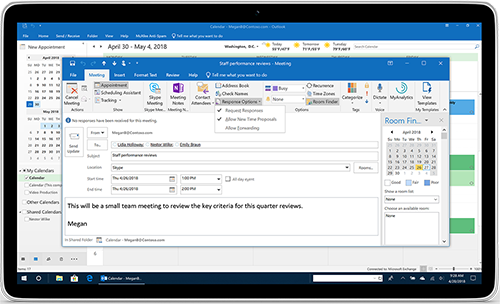 Manage email more efficiently with a focused inbox, updated contact cards, @mentions, and Office 365 Groups.- Updated contact cards